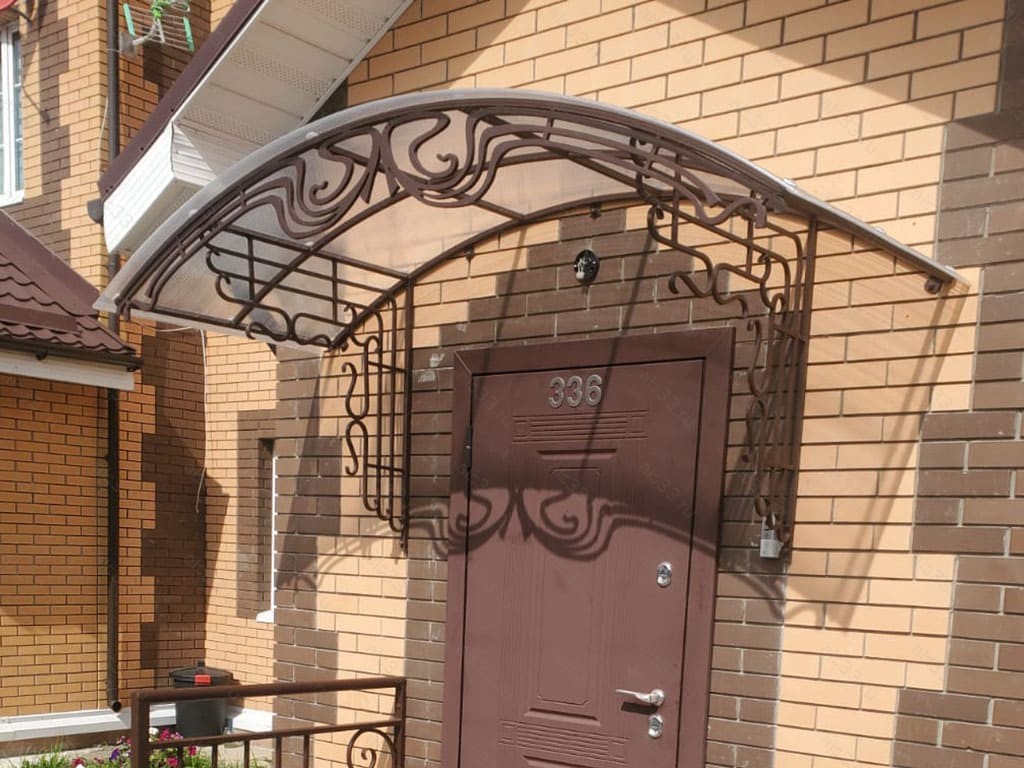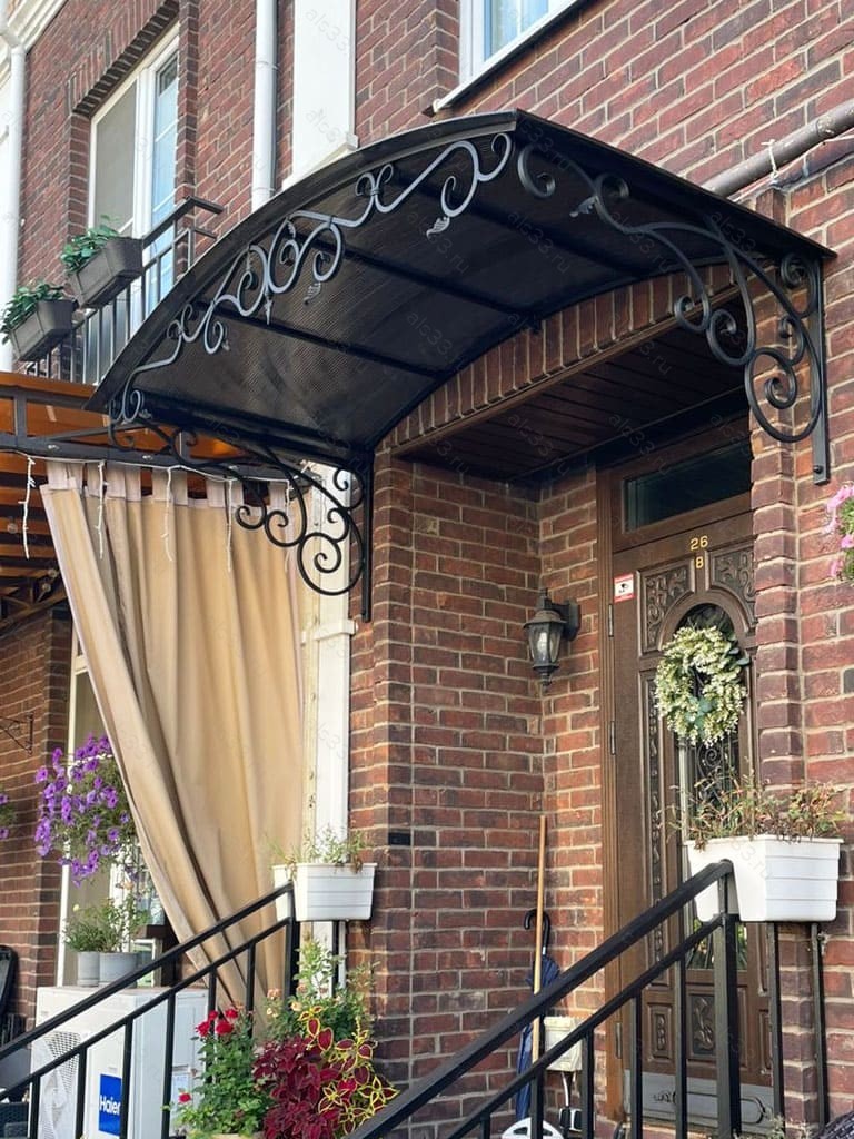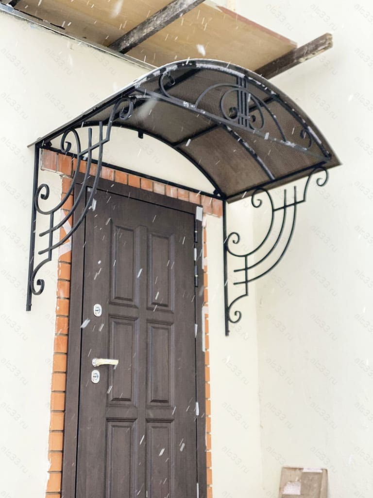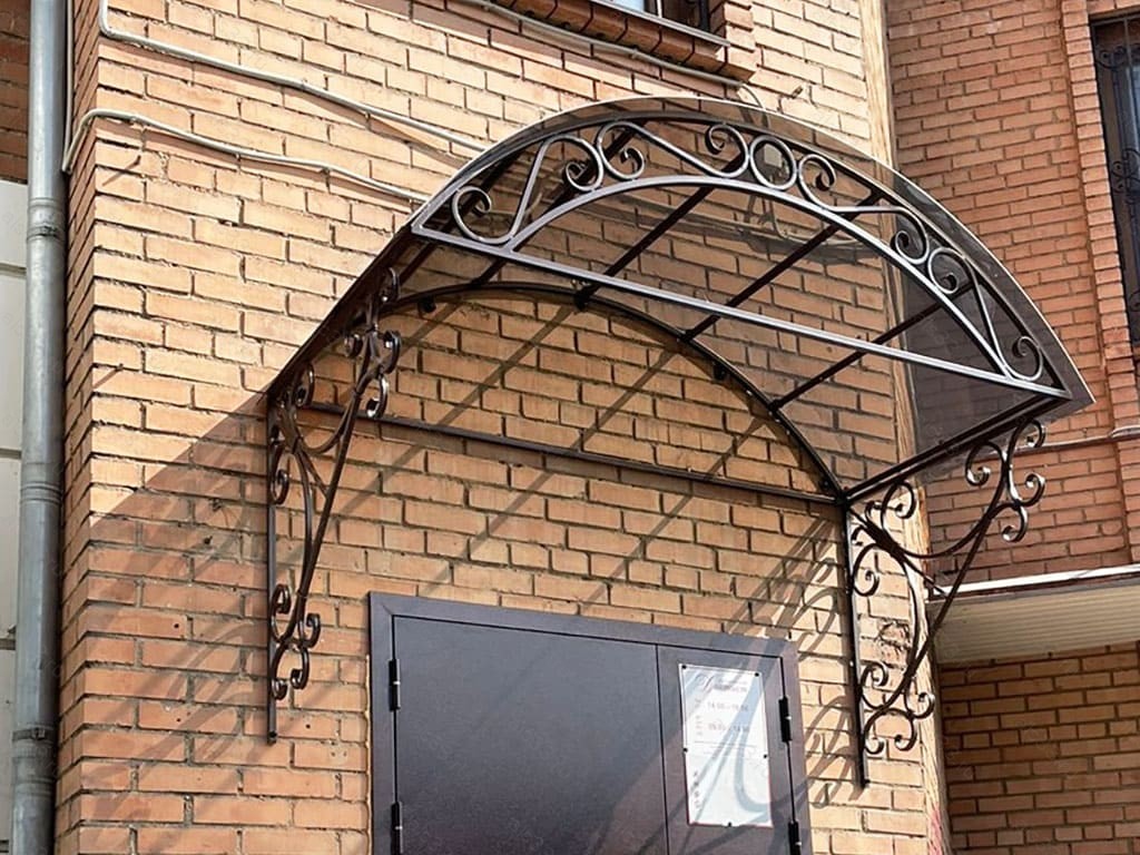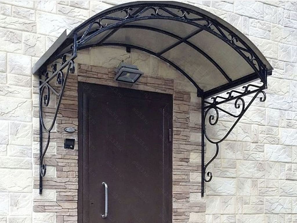 Компания ООО «Альянс» предлагает изготовление арочных козырьков на заказ по готовым или индивидуальным проектам. Мы используем прочный металл и поликарбонат разной степени прозрачности + элементы художественной ковки, которые придают конструкции уникальный вид.