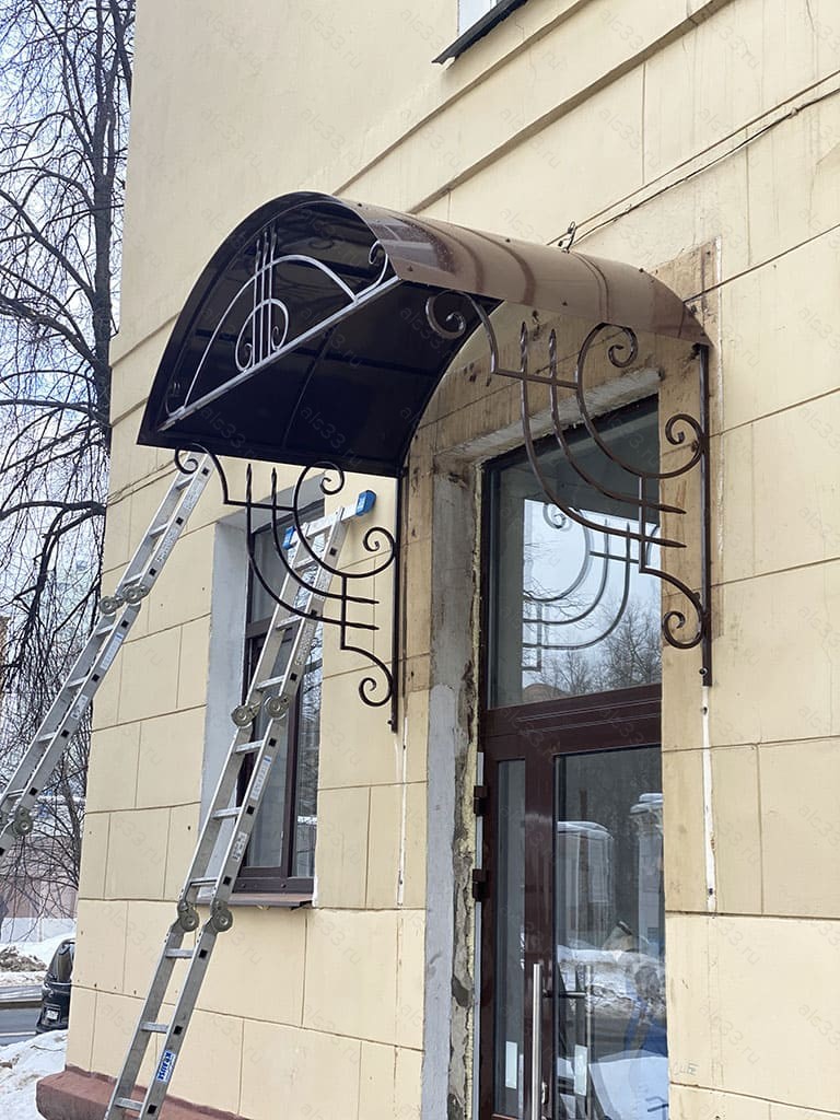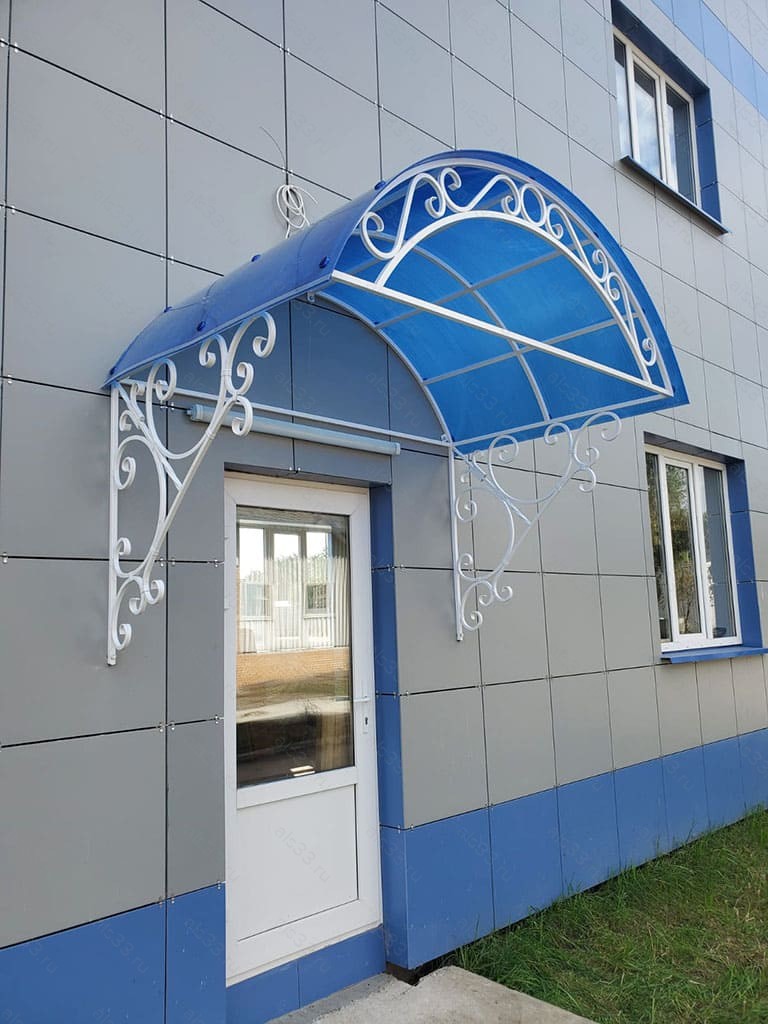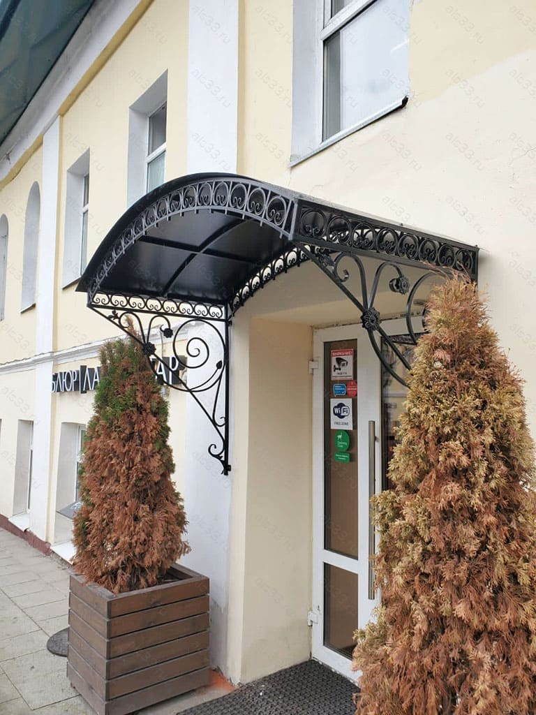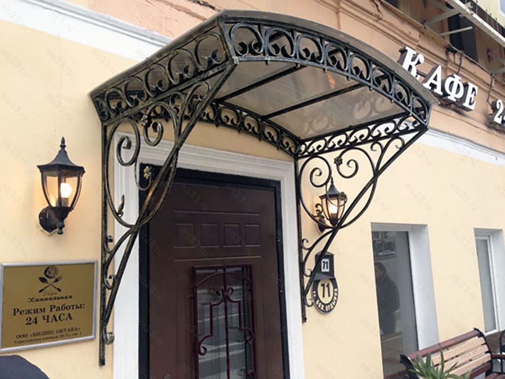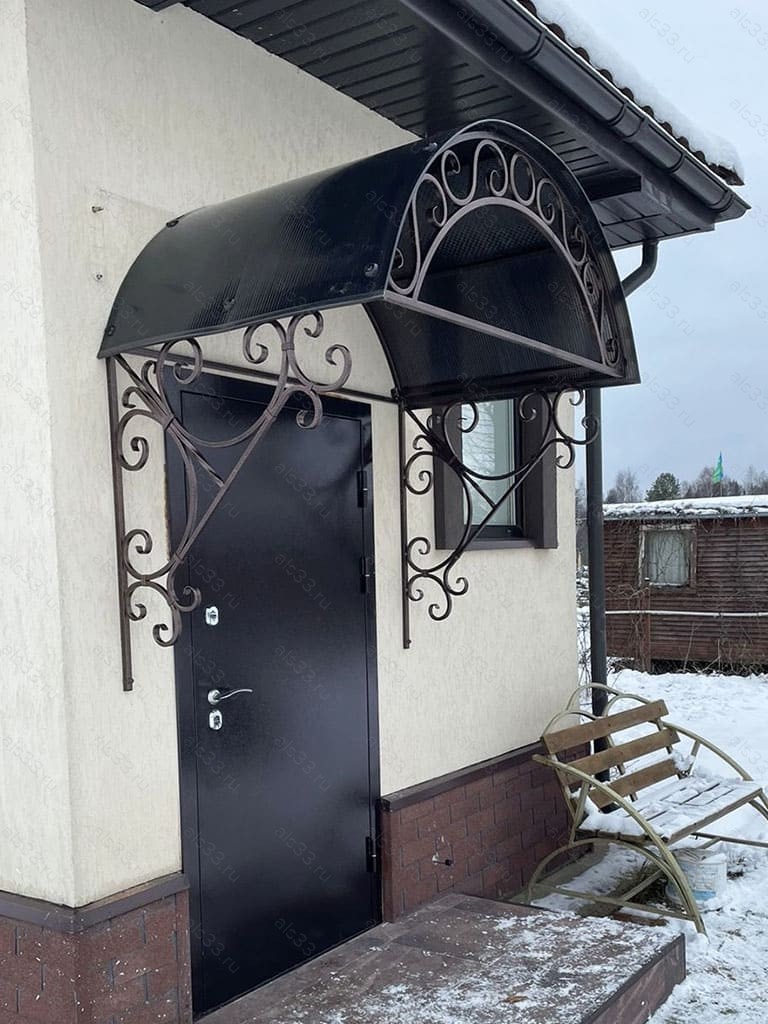 Компания ООО «Альянс» предлагает изготовление арочных козырьков на заказ по готовым или индивидуальным проектам. Мы используем прочный металл и поликарбонат разной степени прозрачности + элементы художественной ковки, которые придают конструкции уникальный вид.