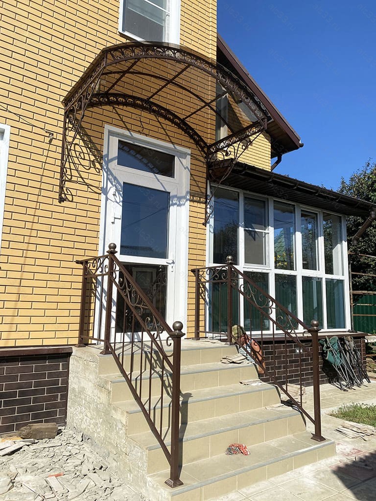 Арочные козырьки - это элегантное и функциональное решение для защиты крыльца и входных дверей. Благодаря плавным линиям и изящной форме такие конструкции придают фасаду особый стиль, создавая гармоничный внешний вид здания.