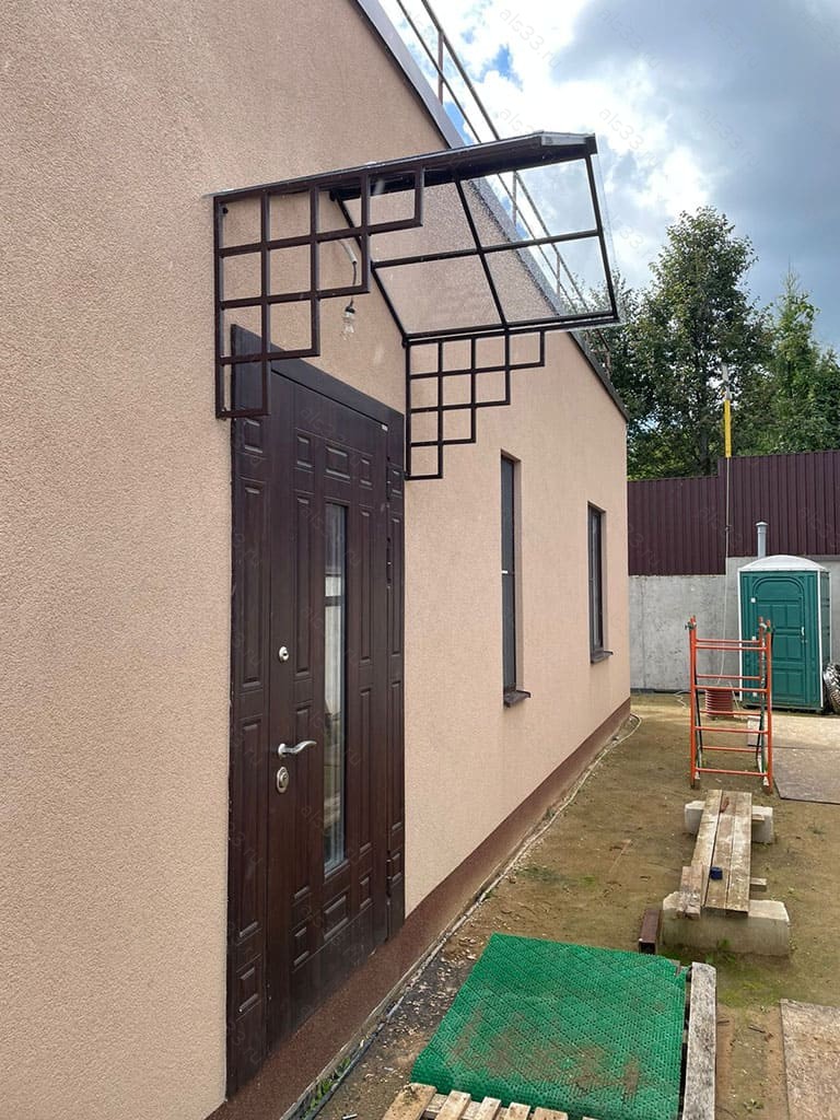 Козырьки двускатные - это практичное и стильное решение для защиты входной группы от дождя, снега и ультрафиолета. Благодаря форме с двумя скатами вода и осадки свободно стекают по сторонам и не задерживаются на поверхности. Такие конструкции отличаются надежностью, удобством эксплуатации и гармонично дополняют фасад любого здания.