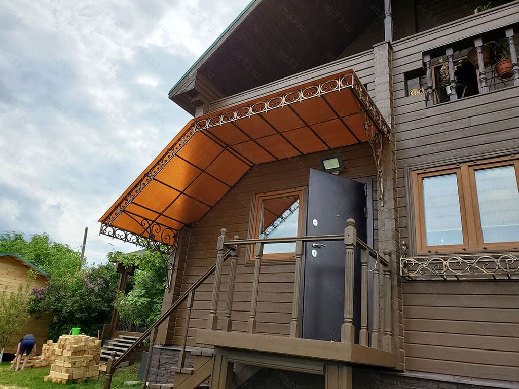 Мы изготавливаем двускатные козырьки из прочного металла и поликарбоната, что обеспечивает долговечность и устойчивость к погодным условиям. Возможен заказ как по готовым эскизам, так и по индивидуальным чертежам.
