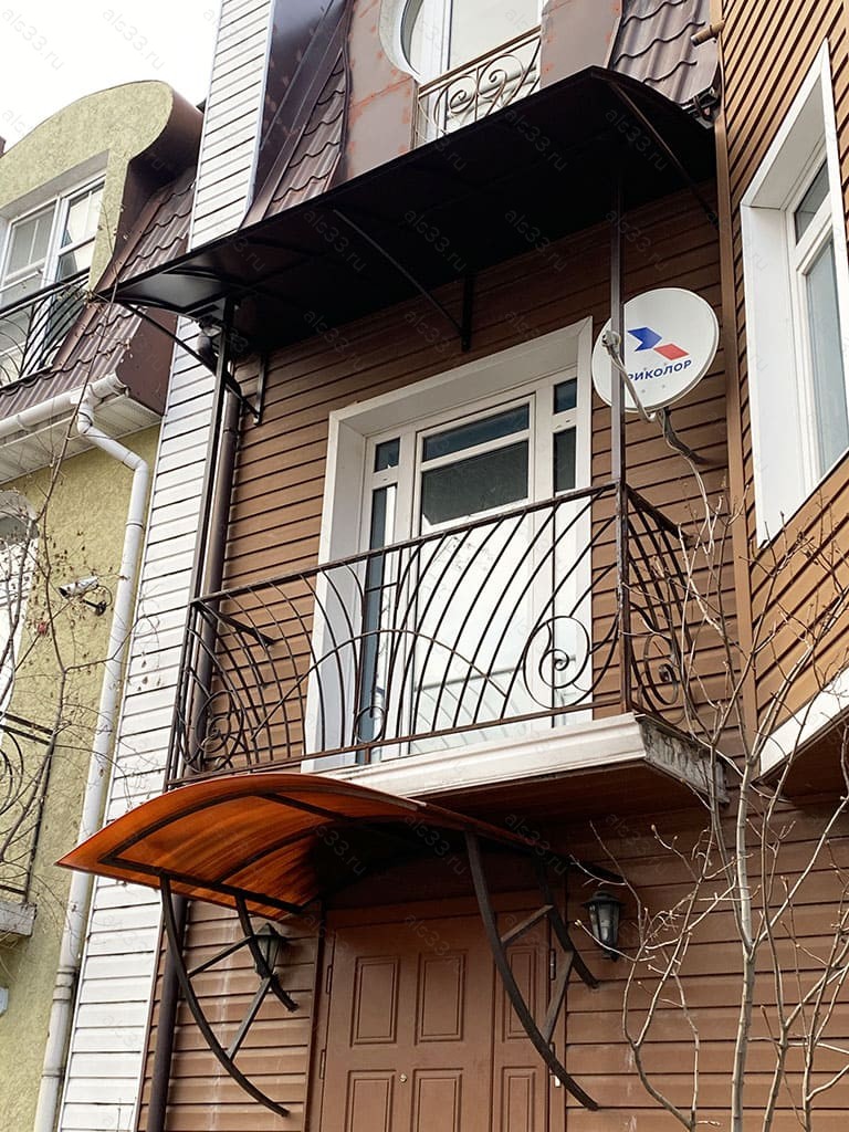 Мы изготавливаем козырьки из металла и поликарбоната, возможны варианты с декоративными коваными элементами. Такие конструкции хорошо выдерживают перепады температур и ветровые нагрузки, оставаясь прочными и долговечными.