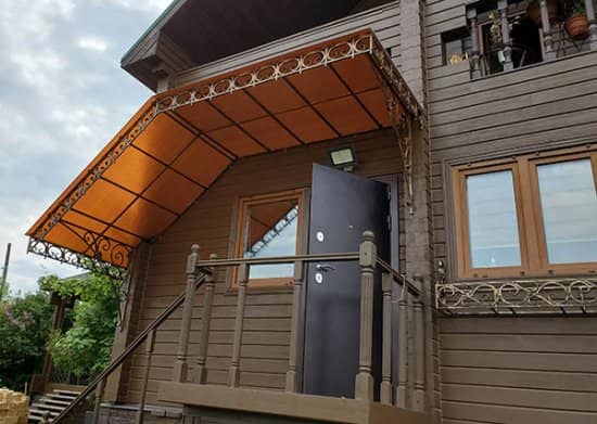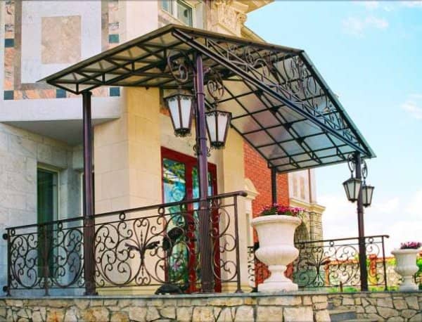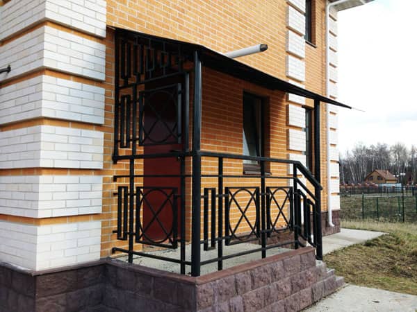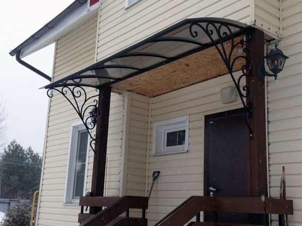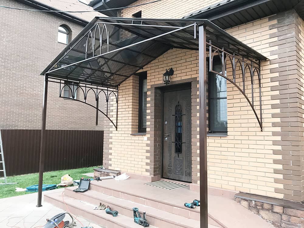 Установленные козырьки и навесы над крыльцом являются классикой дизайна для каждого здания. Удивительно, но обычная конструкция становится одновременно и защитным барьером от негативных факторов, и некой изюминкой экстерьера. Обычно сооружение устанавливается таким образом, чтоб входящий или выходящий человек мог спокойно задержаться на крыльце для различных целей и спрятаться под навесом (открыть зонт, позвонить в домофон, оценить погодные условия и т.д.).