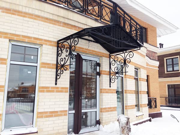 Альянс готов предложить кованые или сварные козырьки из металла. Именно этот материал способен обеспечить долговечность конструкции, легкость очистки и привлекательный внешний вид фасада. У специалистов нашей компании можно оставить индивидуальный заказ, в котором готовые навесы будут дополнены интересными элементами декора.
