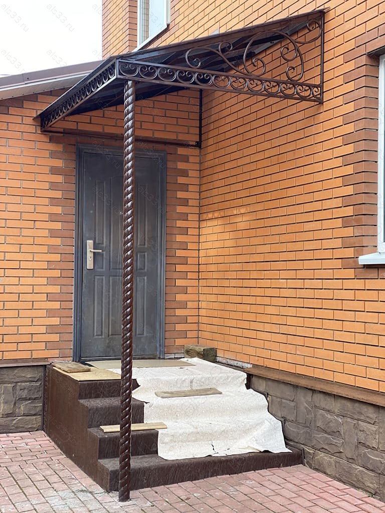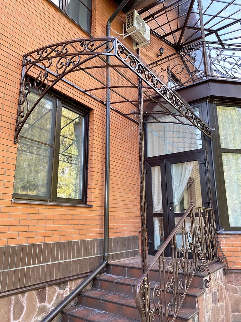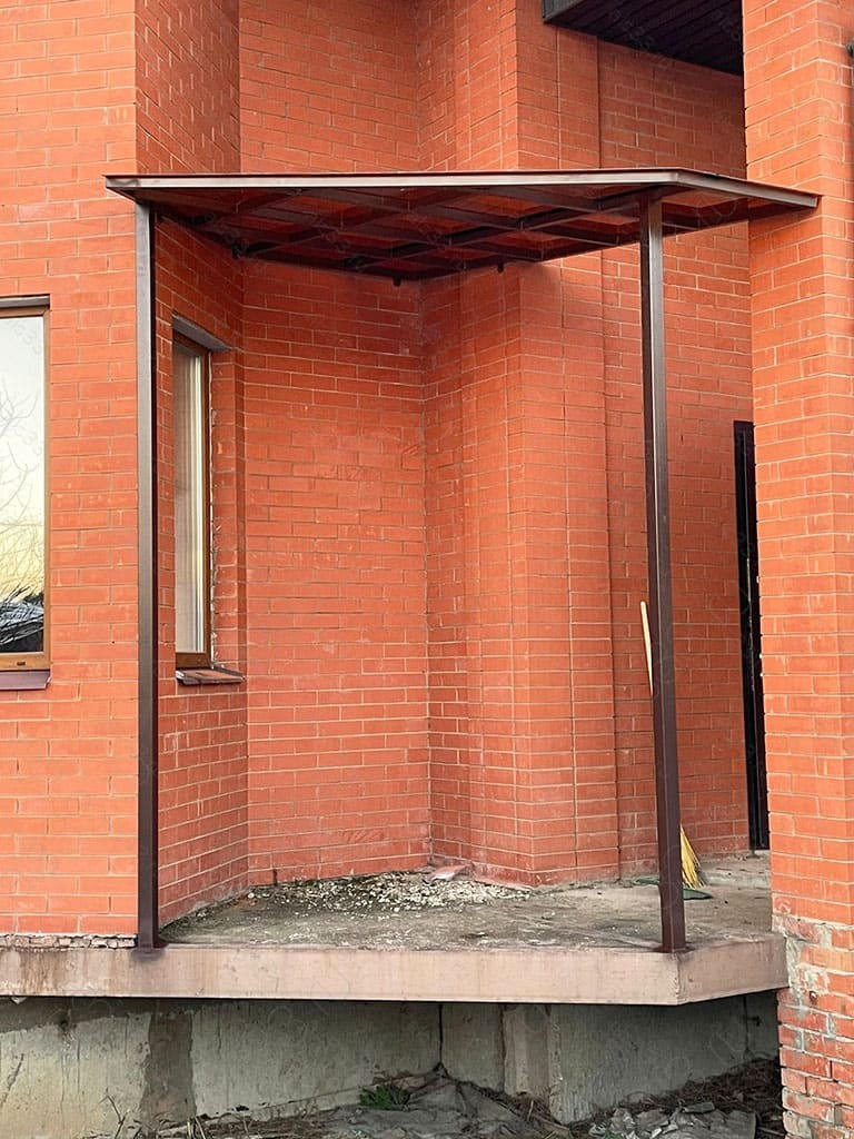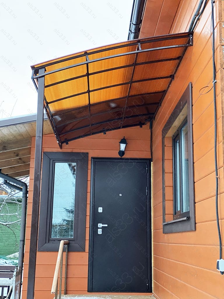 Угловые козырьки - практичное решение для домов и зданий, где вход расположен на углу. Такая конструкция не только защищает крыльцо и дверь от осадков, но и органично смотрится на фасаде, подчеркивая архитектуру здания.