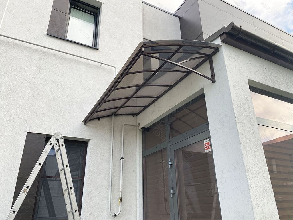 Установка угловых козырьков удобна и не требует больших затрат времени. Они хорошо отводят воду и снег, поэтому крыльцо и двери остаются сухими, а сама конструкция не теряет вида долгие годы.